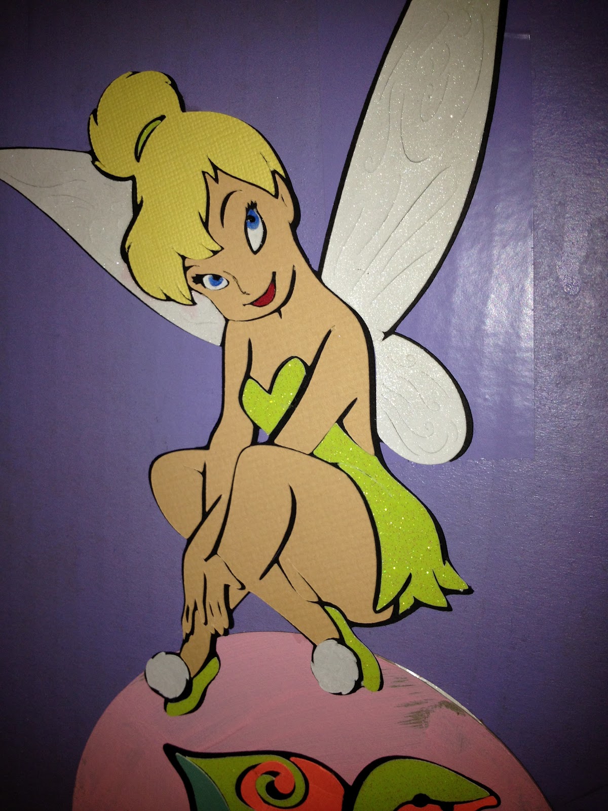 Aubrey LOVED this phrase. She must have repeated it 25 times in the half hour that we put this on before bed. The flowers and Tinkerbell stuff are all from the Disney Tinkerbell cartridge for the Cricut. Very tedious and time consuming but they turn out lovely.
